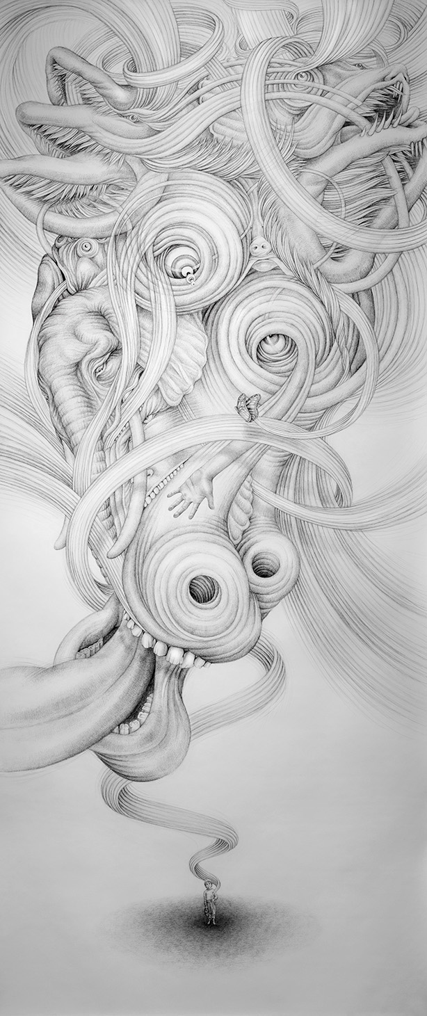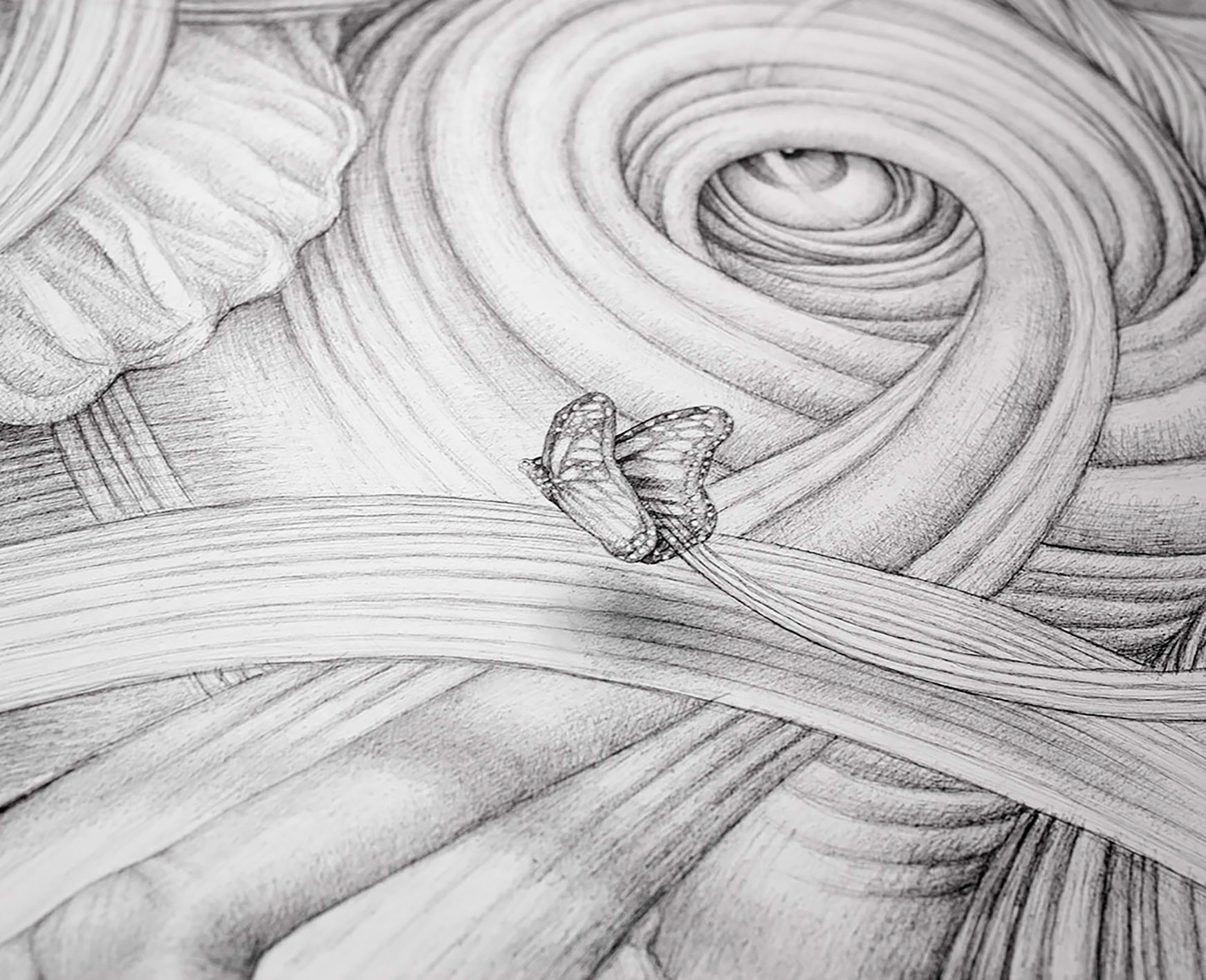 "Butterfly Effect", 355cm x 150cm, ink drawing, 2016