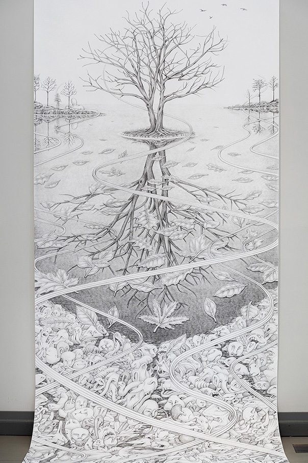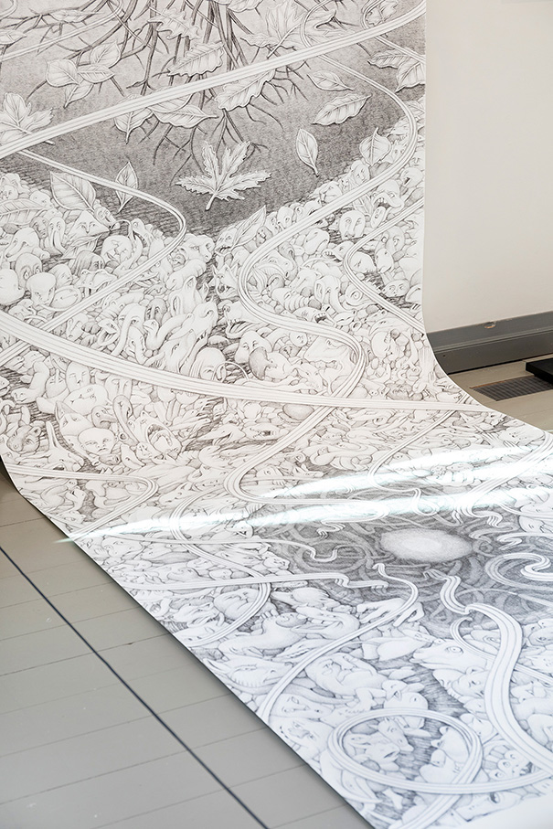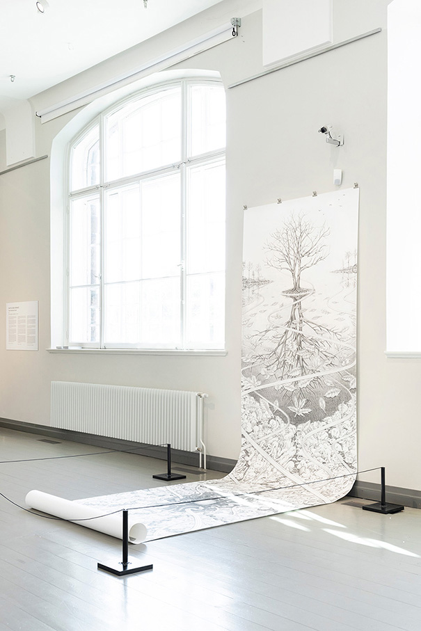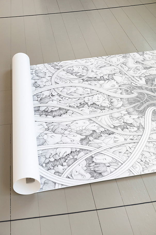 "Humus (taking over)", 470cm x 140cm, ink drawing, 2024