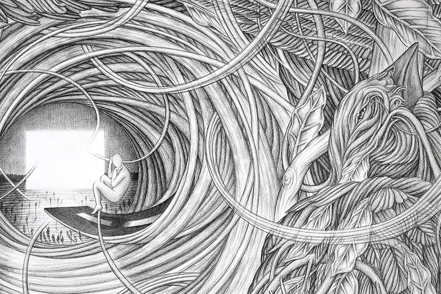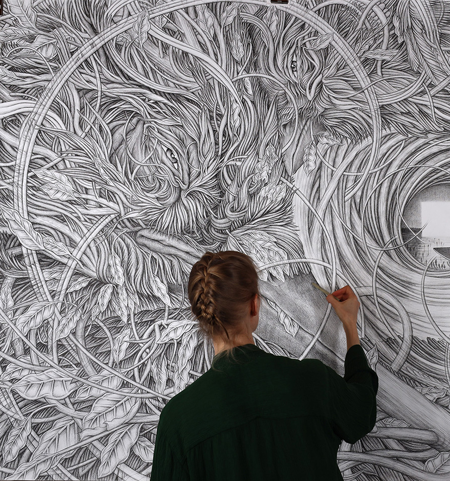 "Nowhere", 140cm x 200cm, ink drawing, 2024