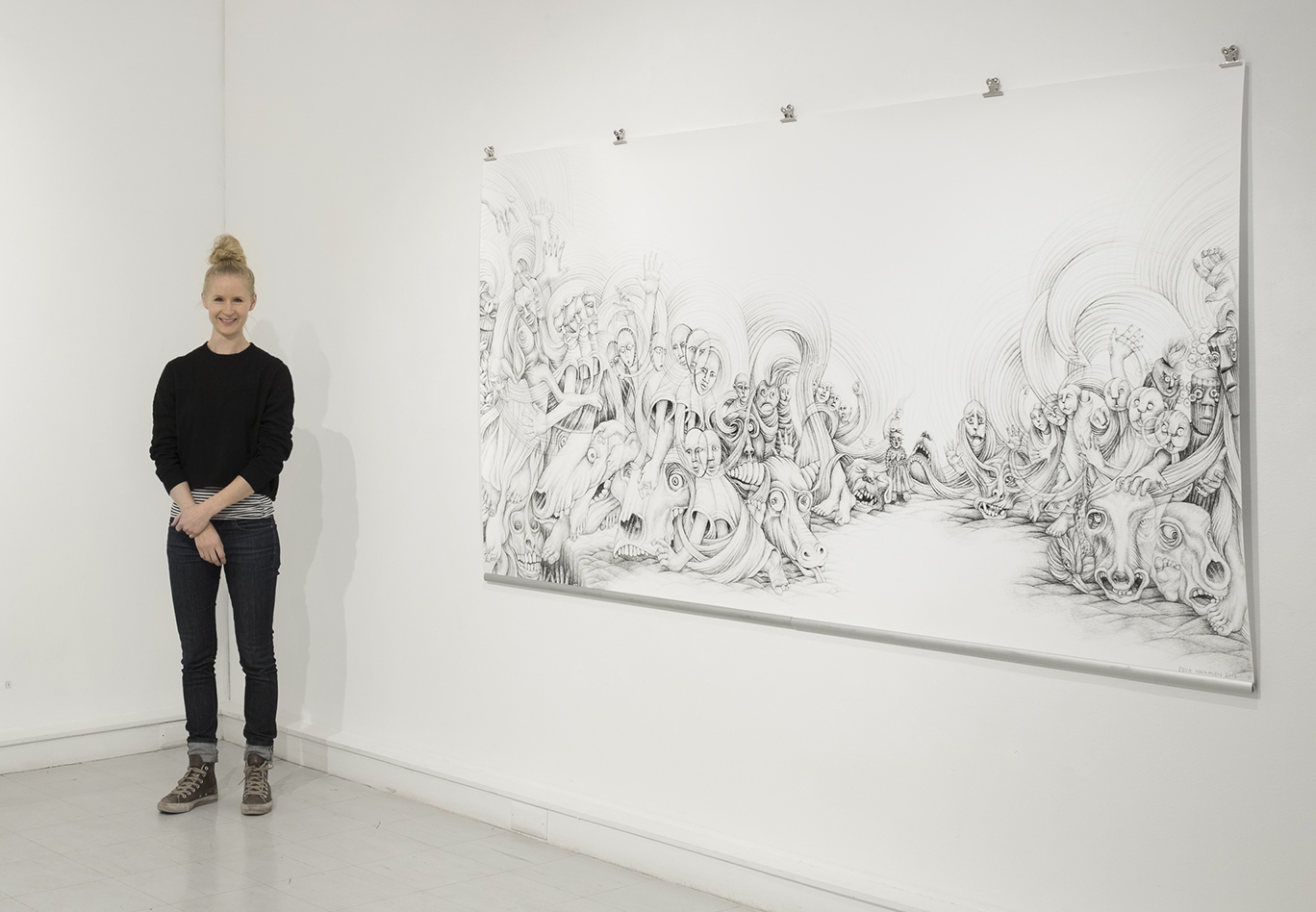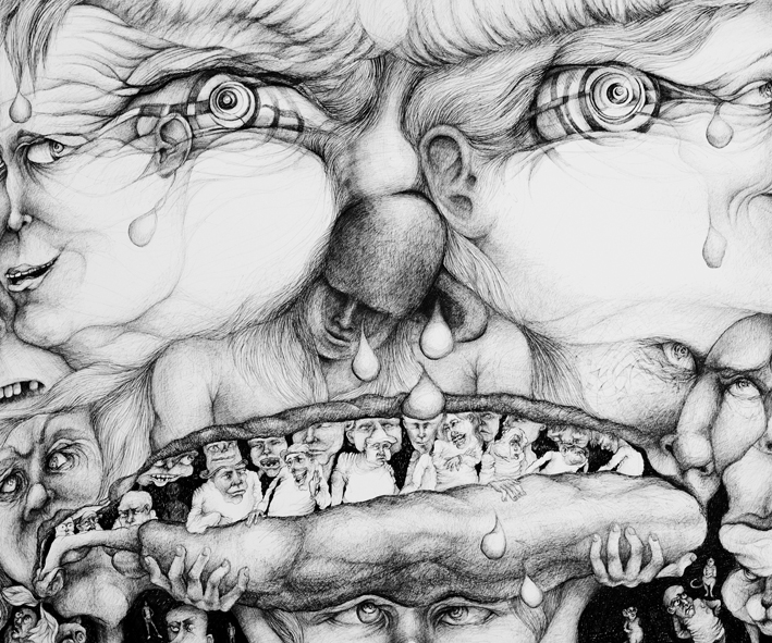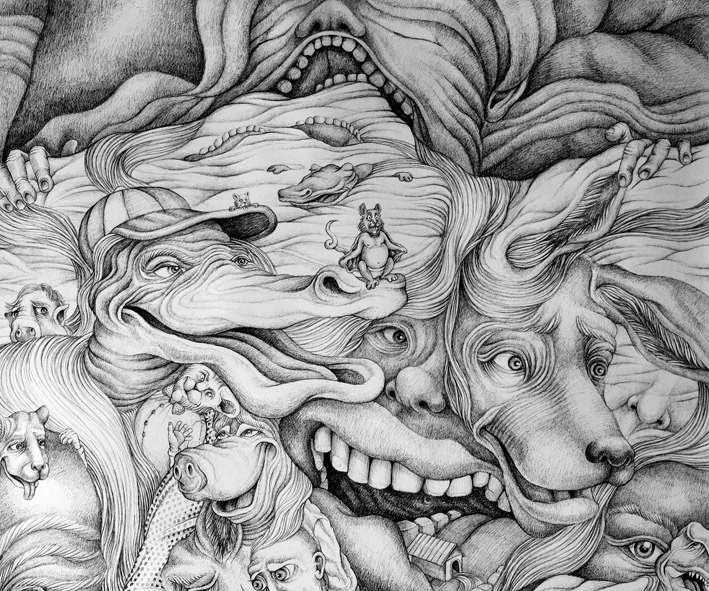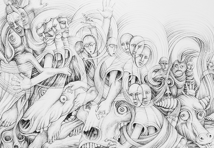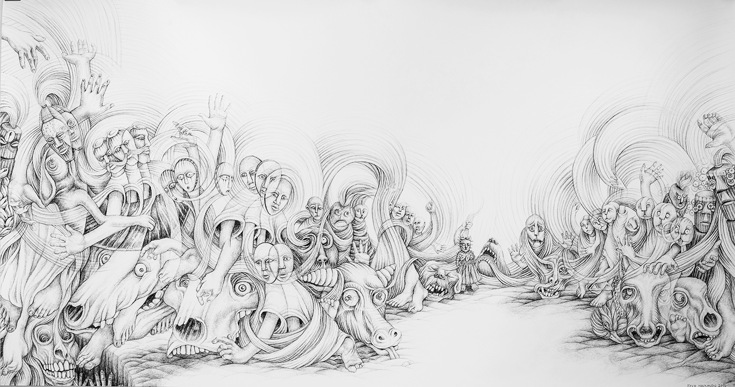 "Facing Fears" (240cm x 120cm, ink drawing, 2016)