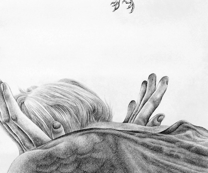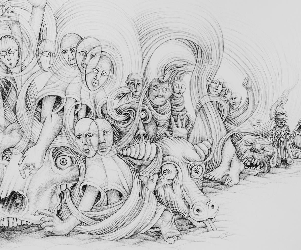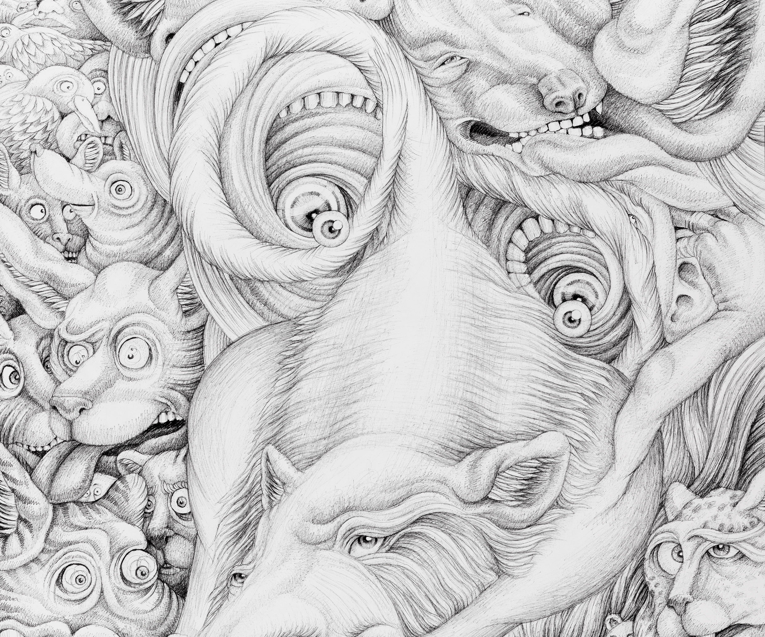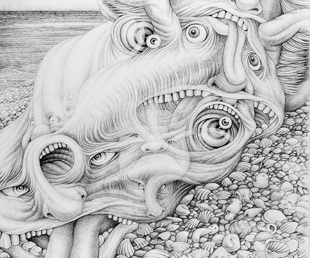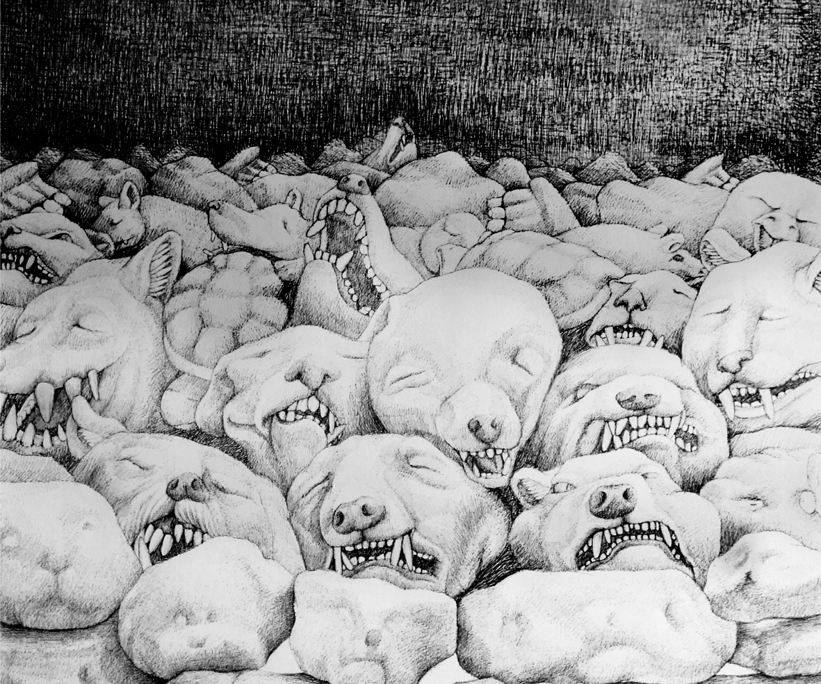 "Facing Fears" (240cm x 120cm, ink drawing, 2016)
