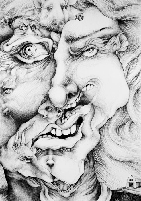 "Animal Farm", 200cm x 140cm, ink drawing, 2011